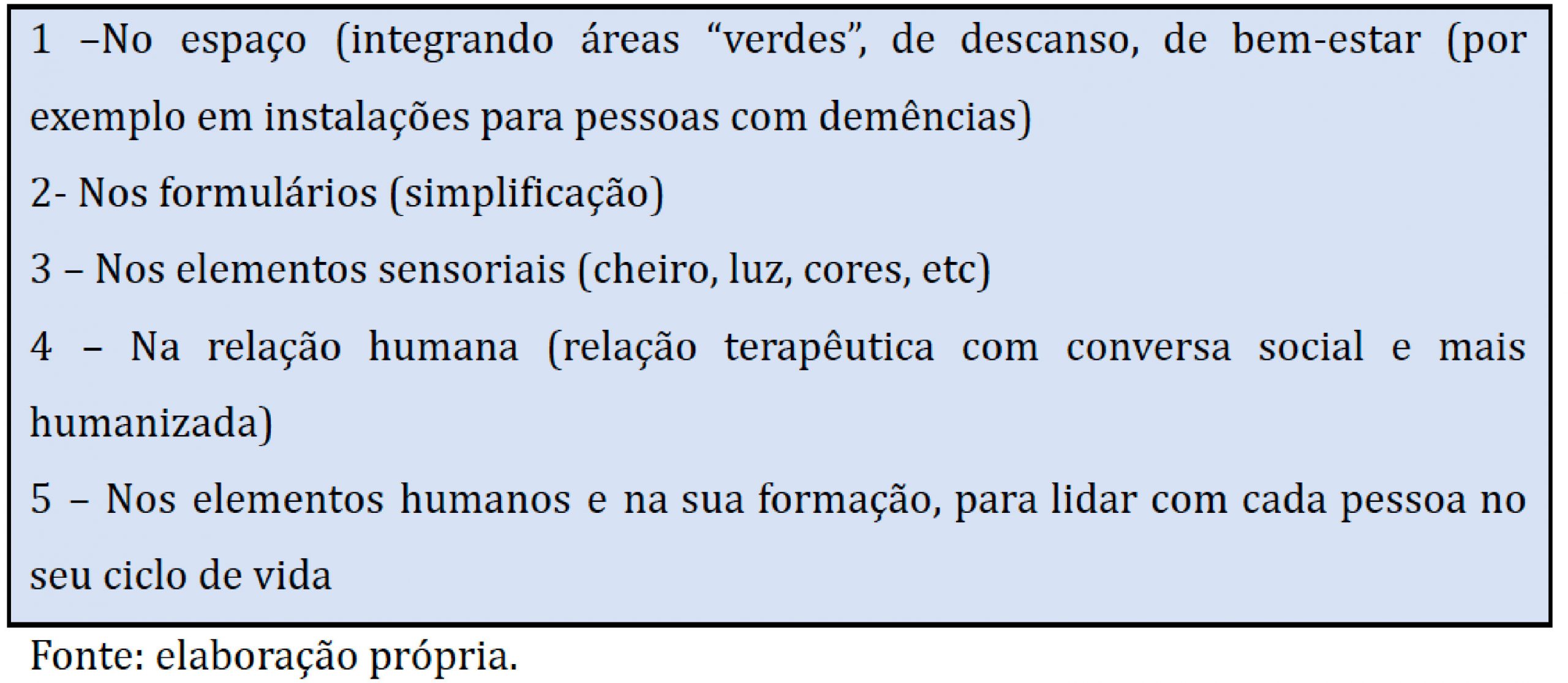 Relativamente ao investimento em espaços para pessoas com demência, por exemplo, Hopkins e colegas (2017 mostraram que há algumas evidências que sugerem que residentes, com demência, em lares de idosos dormiram melhor quando expostos a níveis elevados de luz (luz azul).