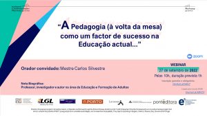 No próximo dia 27 de setembro, pelas 10h00, é dinamizado um webinar subordinado ao tema “A Pedagogia (à volta da mesa) como um fator de