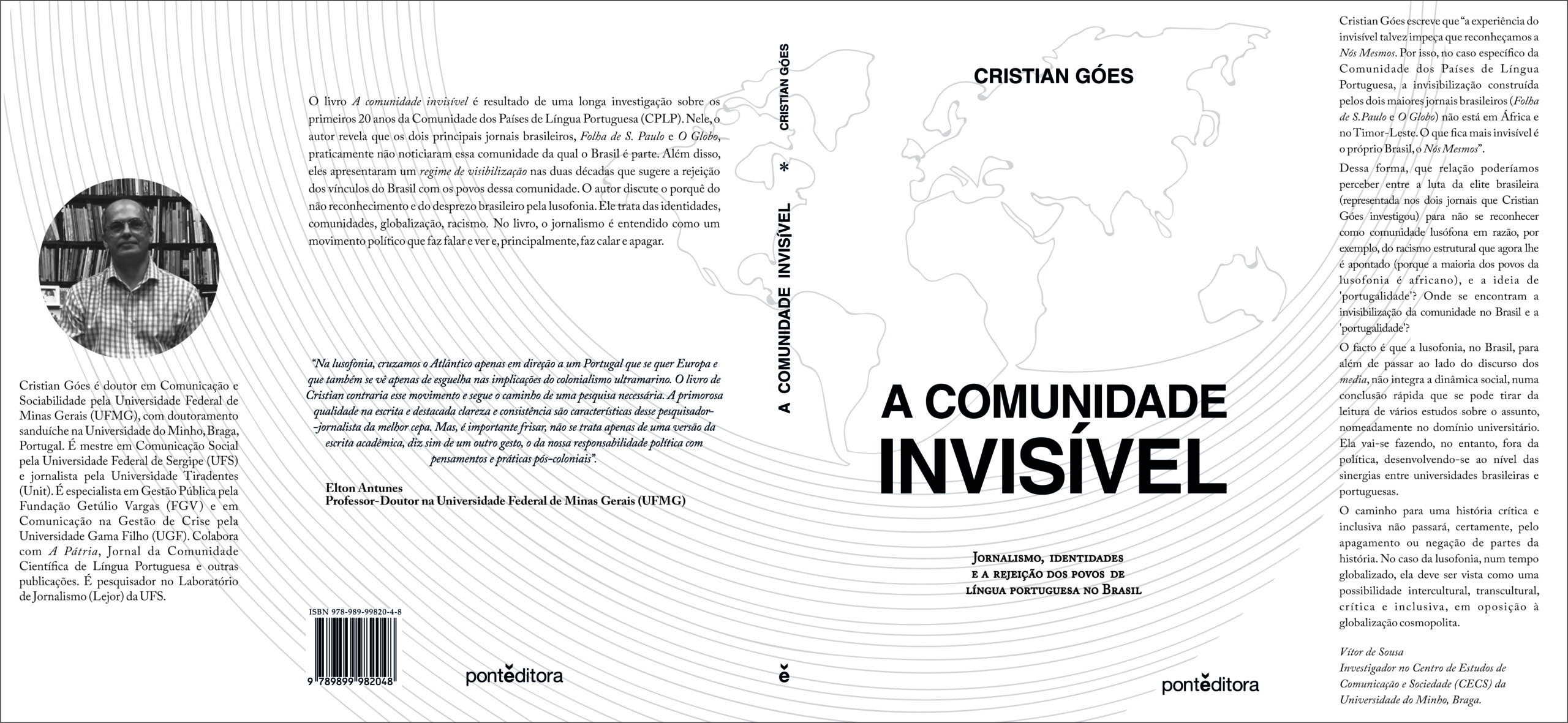 O livro intitulado A Comunidade Invisível: jornalismo, identidades e a rejeição dos povos de língua portuguesa no Brasil, que promete “causar polémica”, parte da tese de doutoramento em Comunicação e Sociabilidade que Cristian Góes realizou na Universidade Federal de Minas Gerais (UFMG). Nesta publicação o auotor também reúne uma coletânea de artigos de opinião científica publicados semanalmente ao longo de mais de um ano neste jornal. De destacar que José Cristian Góes foi até ao passado dia 1 de janeiro de 2021, o Editor-chefe d’ A Pátria – Jornal da Comunidade Científica de Língua Portuguesa, propriedade da ponte Editora. Atualmente mantém diversas colaborações com a Ponte Editora, nomeadamente com A Pátria, enquanto colunista residente, e integra o comité científico da Herança – Revista de História, Património e Cultura.