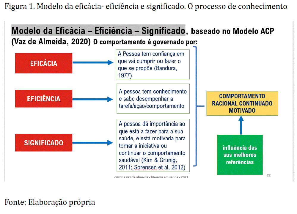 Tanto na educação como na saúde, o compromisso de influência dos seus destinatários – alunos e pacientes – têm repercussões significativas nos resultados para sociedade. Na saúde a adesão compreendida pelo paciente leva a melhores resultados em saúde, e na educação, o conhecimento leva ao progresso das nações. Por detrás existem fatores promotores, tais como o processo cognitivo de aprendizagem, a motivação, a autoeficácia, a comunicação, a perícia, o conhecimento que envolve todos os participantes (Figura 1).